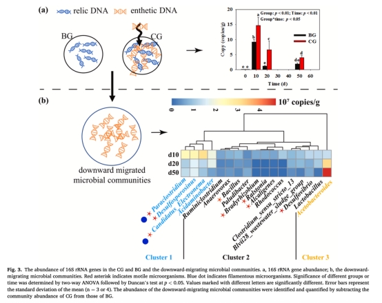 連接組中芘向深層(L3層)遷移量比對照組(CC)高17.3-49.2%(p<0.01),且微生物群落(含絲狀運(yùn)動(dòng)微生物)同步向下遷移;