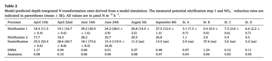 硝化/反硝化速率(表2):