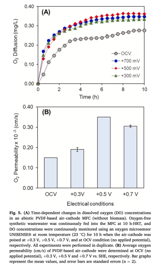 量化固定陰極電位對電流生成和氧氣滲透的促進作用。