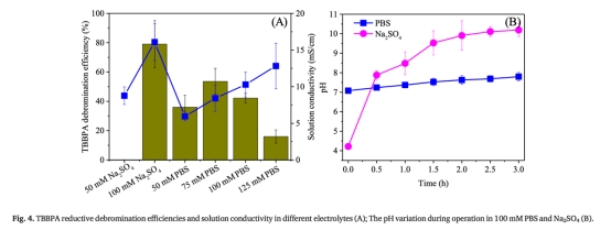 ? 數(shù)據(jù):-1.2 V陰極電位、10 mg L?1 TBBPA濃度下E??(脫溴率)達(dá)96.5%