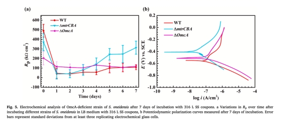 闡明好氧環境中S. oneidensis加速不銹鋼腐蝕的分子機制,驗證直接微生物電子攝取(而非傳統電子媒介)是主導途徑。