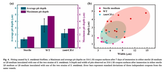 ? 數據:ΔmtrCBA最大點蝕深度比野生型降低60%