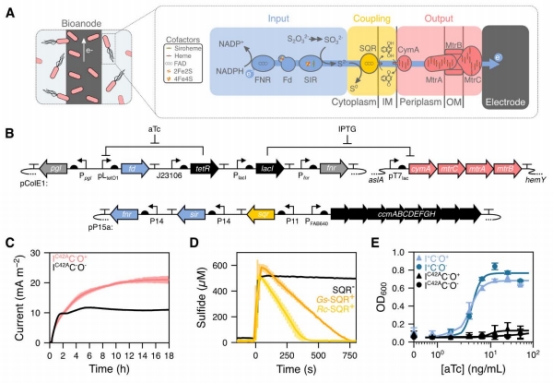 開(kāi)發(fā)了一種基于合成生物學(xué)與材料工程的實(shí)時(shí)生物電子傳感器,通過(guò)編程大腸桿菌構(gòu)建化學(xué)門(mén)控電子傳遞鏈: