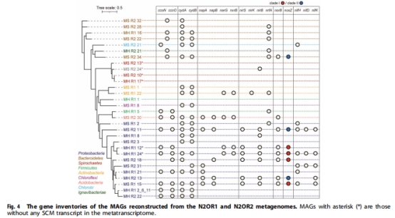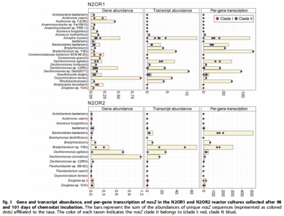 基因豐度:NosZG5(clade II)在N?OR2反應器占比86.8%