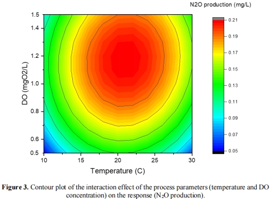 等值線圖顯示最低N?O區(DO≤0.7 mg/L, T=16°C)(圖3)。
