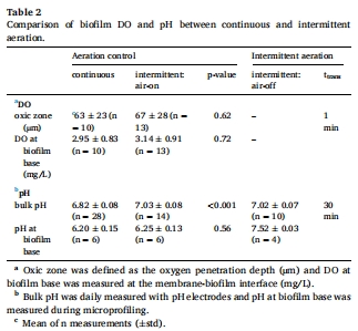 間歇曝氣調節膜曝氣生物膜反應器中的微生物活動:節能脫氮和低一氧化二氮排放