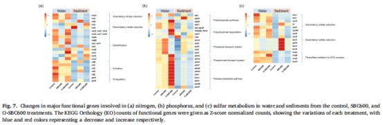 營養(yǎng)鹽控制:O-SBC將沉積物從營養(yǎng)源轉(zhuǎn)化為營養(yǎng)匯,額外減少66.3% NH??-N和142.9% PO?3?-P(圖5)。