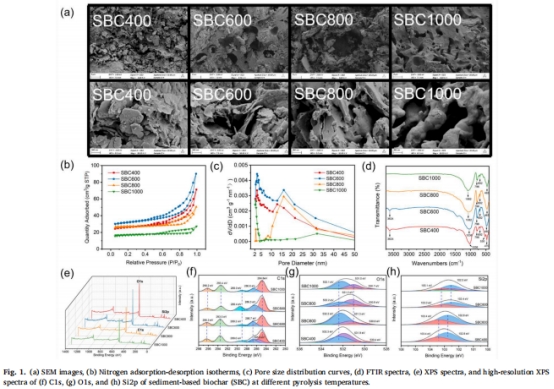 采集長江支流(秦淮河)沉積物,在400–1000°C熱解制備SBC(圖1a)。