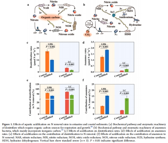 本研究揭示了水生酸化對河口與海岸帶沉積物中微生物介導的氮去除過程的影響: