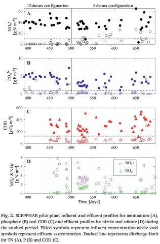 去除效率:COD(76±18%)、TN(67±23%)、P(82±24%),滿足歐盟排放標準。