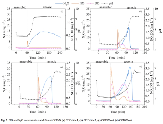 量化氣體積累:明確不同COD/N下NO和N?O的動態積累規律。