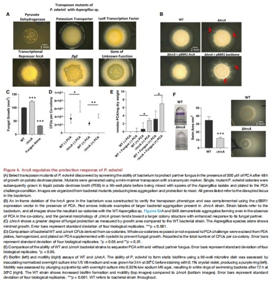 P. edwinii保護(hù)Aspergillus fumigatus(人類病原體)和Fusarium(植物病原體)免受PCA抑制(圖6E, G)。