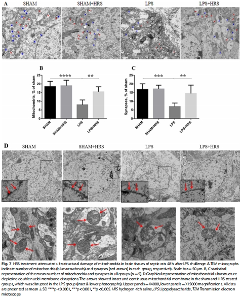 論文研究了富氫鹽水(HRS)對膿毒癥相關腦病(SAE)的神經保護作用: