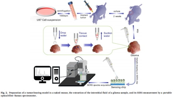 小鼠膠質瘤表面滴加水滴,滲透間隙液后轉移至芯片。