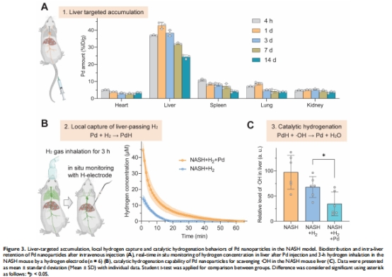 Pd納米顆粒通過儲氫-催化雙功能實現:①肝臟靶向氫富集 ②·OH高效清除。