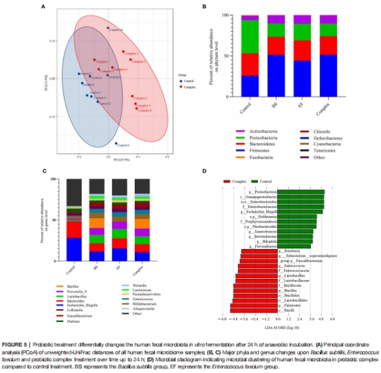 LCBE處理組乳桿菌和雙歧桿菌增加,大腸桿菌-志賀菌屬減少(圖5B-C)。
