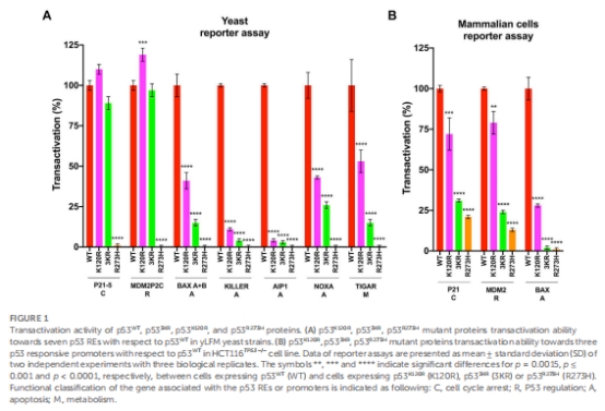 研究意義:證實p53K120R具有選擇性轉錄功能,部分保留代謝靶點(如TIGAR)調控潛力。
