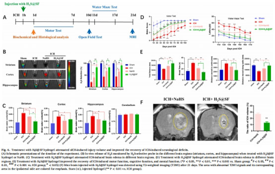 本研究開發了一種負載硫化氫(H?S)的可注射絲素蛋白水凝膠(H?S@SF),通過立體定位注射治療小鼠嚴重腦出血(ICH)。核心發現: