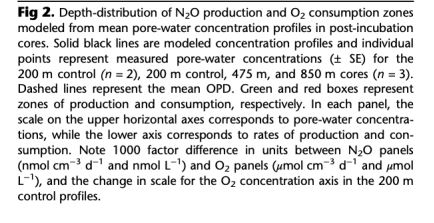 3. 環境響應量化:直接驗證氧濃度對N?O產生的調控(圖4a),如200米站點低氧暴露后OPD從4.2 mm降至1.3 mm,N?O峰值濃度升37%,為預測上升流或OMZ擴張的N?O排放提供實驗基礎。