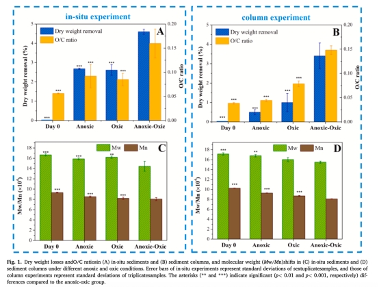 ? 數據:交替條件下重量損失達4.6%(原位)和3.4%(柱實驗),是靜態條件的1.7-6.8倍;O/C比增幅0.10-0.11