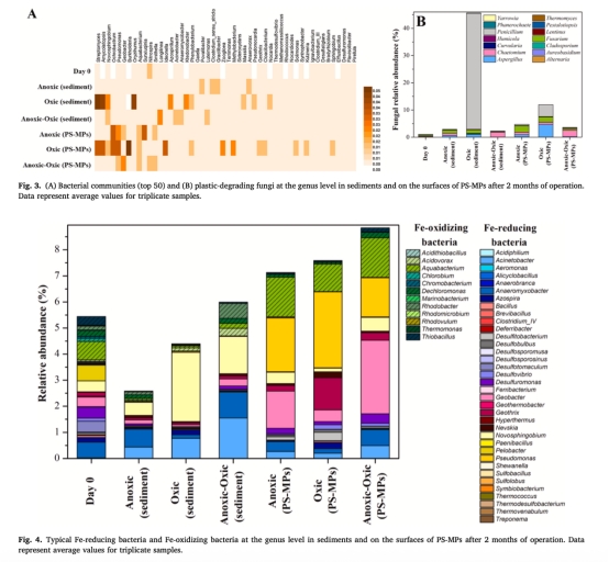 1. 揭示不同氧化還原條件(靜態缺氧/有氧 vs 交替缺氧-有氧)對沉積物中PS-MPs老化的影響差異