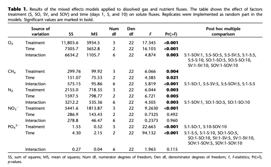 ? 數據:所有處理凈耗氧(-41至-146 mmol O2 m?2 d?1),蠕蟲處理(SO/SOV)耗氧量高于植被處理(SV)。