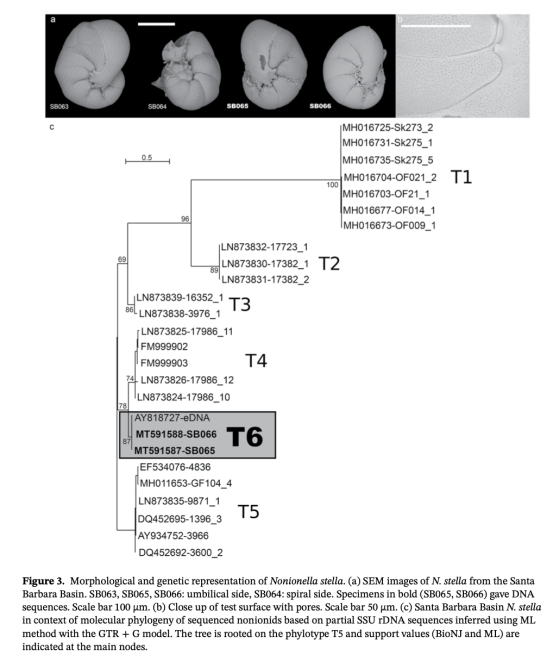 1. 分類學貢獻:確認SBB的N. stella為新基因型T6(分子系統發育樹圖3c)。