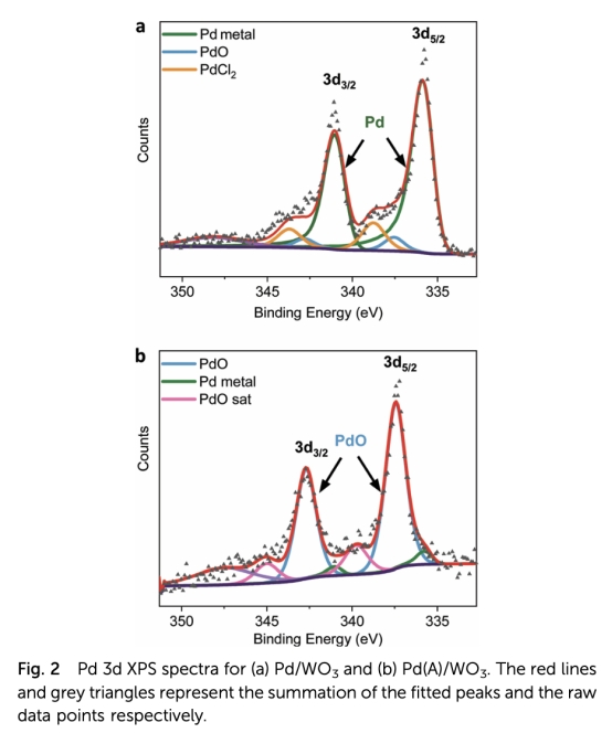 ? XPS驗(yàn)證Pd氧化態(tài)(圖2:Pd/WO?中Pd?為主,Pd(A)/WO?中Pd2?(PdO)為主);
