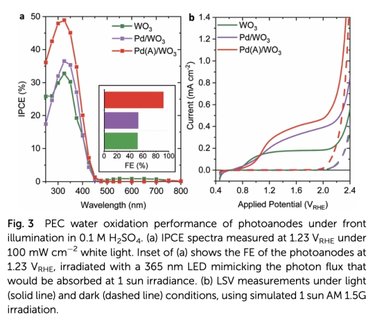解決WO3光陽(yáng)極在酸性條件下水氧化選擇性低的問(wèn)題,通過(guò)PdO助催化劑提升其法拉第效率和光電流密度,闡明PdO的作用機(jī)制。