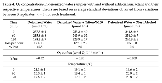 1. 氣體擴(kuò)散抑制:天然SML和人工表面活性劑通過增厚DBL顯著抑制氧氣擴(kuò)散,最大抑制率達(dá)81%。