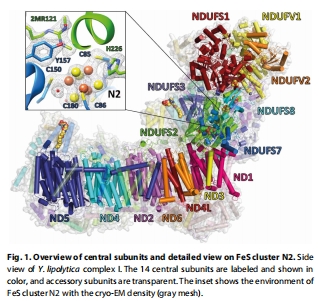 迄今 最高分辨率(2.1 ?)的復合物I結構,定位脂質、水分子及輔因子。