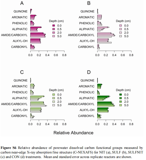NEXAFS顯示酚類/酰胺基團在厭氧區相對豐度增加(圖S6)。