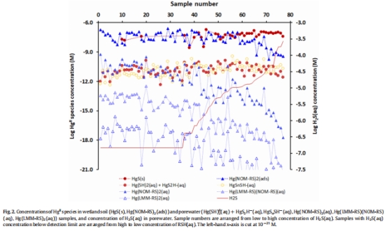結果:Hg(NOM-RS)?(aq)和Hg(多硫化物)占主導,LMM-RSH絡合物(如Hg(半胱氨酸)?)濃度極低(平均<0.000038 pM)。