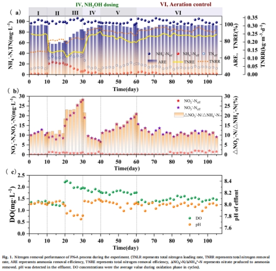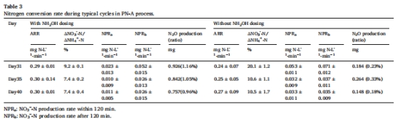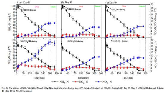 解決PN-A工藝惡化問題:針對(duì)因過度曝氣導(dǎo)致的NOB增殖和硝酸鹽積累,探索羥胺短期投加的恢復(fù)效果。