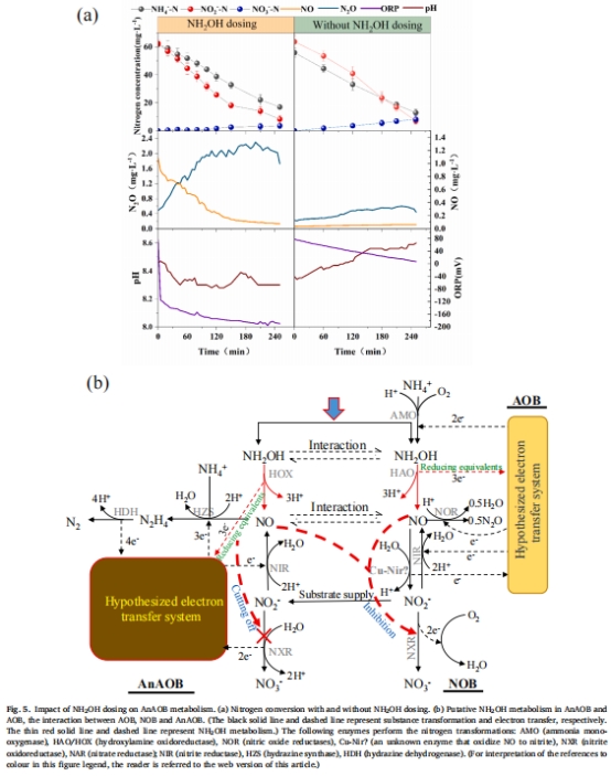 闡明羥胺作用機(jī)制:解析羥胺如何通過代謝中間體(如NO)抑制NOB,并促進(jìn)AOB與AnAOB的協(xié)同作用。
