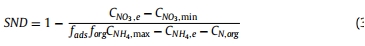 同步硝化/反硝化(SND)效率:公式(3)(2.7節)。