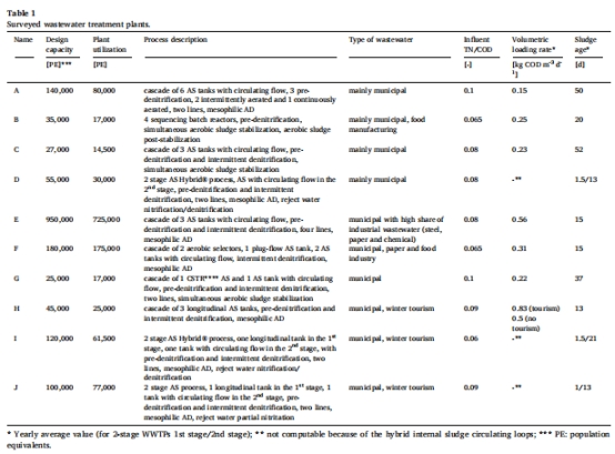 站點選擇:10座奧地利WWTPs,涵蓋單級/多級活性污泥、SBR、Hybrid®工藝,設(shè)計負(fù)荷1.7萬-95萬人口當(dāng)量(表1)。