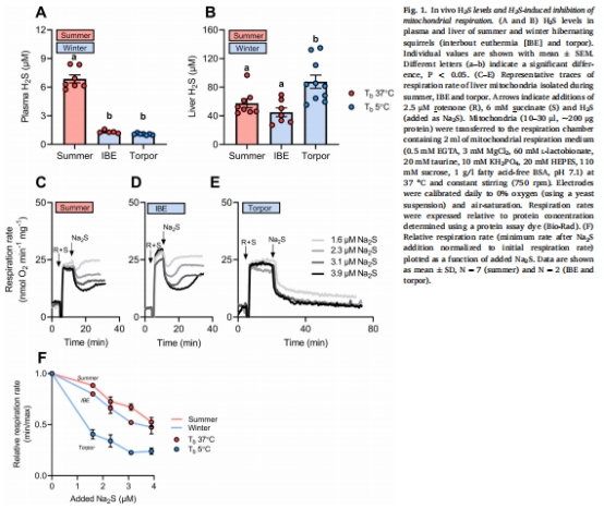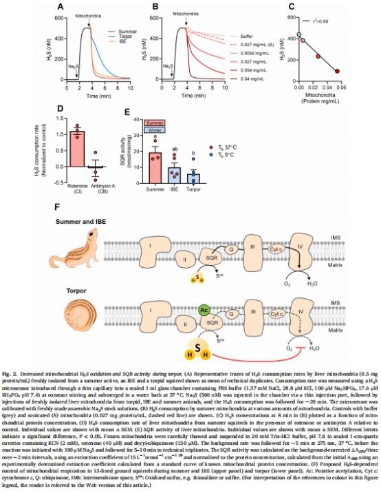 驗證數據:深眠期肝臟H?S水平升高(圖1B),離體線粒體H?S氧化速率降低(圖2A-C),SQR活性下降(圖2E)。