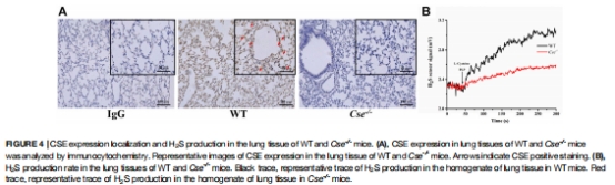 Unisense動態(tài)曲線顯示:Cse?/?小鼠肺組織H?S生成速率↓70%(圖4B),直接關(guān)聯(lián)CSE蛋白缺失(圖4A)。