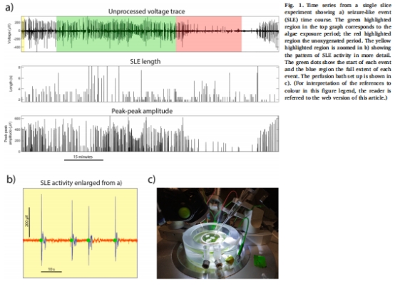 微藻供氧組皮層切片的癲癇樣事件(SLE)活動(頻率、振幅、時長)與常規(guī)氧合組無差異(圖1, 圖2);