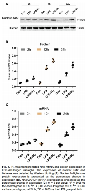 LPS激活小膠質細胞后Nrf2核轉位↑3倍(圖1B-C),H?進一步↑2倍(圖7B-C)。