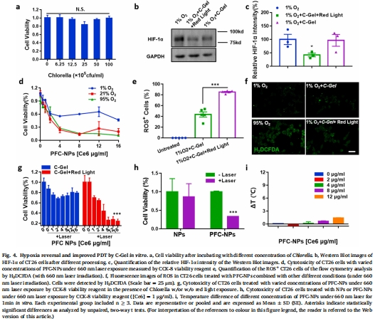 缺氧逆轉:C-Gel光照后降低HIF-1α表達(圖4b-c);