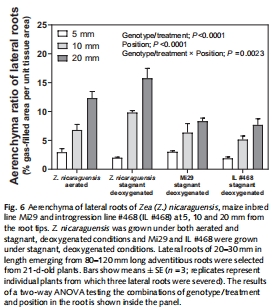 除了不定根外,側根在 Zea nicaraguensis 中形成徑向氧損失的屏障,在玉米中形成染色體段滲入線