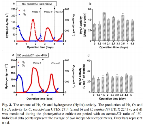 使用富含乙酸鹽的發(fā)酵罐流出物生產(chǎn)無需 S 控制的可再生藻類照片 H2