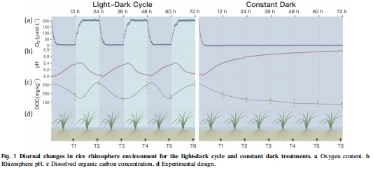 本研究通過丹麥Unisense微電極技術(shù)結(jié)合16S cDNA測序,首次揭示光照通過兩種機制調(diào)控水稻根際微生物晝夜節(jié)律: