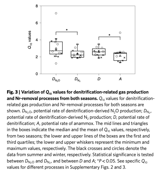 2. 反硝化衍生的N?O生成對溫度更敏感(Q??更高),加劇溫室效應。