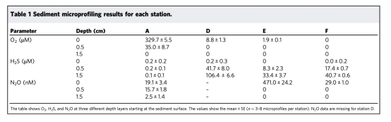 ? 使用丹麥Unisense微電極測(cè)量沉積物孔隙水的O?、H?S、N?O垂直分布(圖2,表1)
