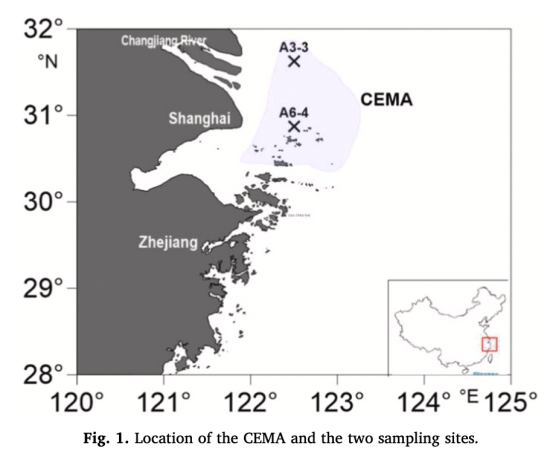 ? 采集長江口泥質區(CEMA)兩個站位(A3-3、A6-4)的沉積物柱狀樣(圖1)。