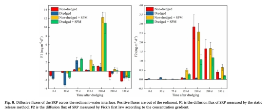 ? 意義:靜態培養法(F1)顯示SPM使疏浚后沉積物由“磷匯”轉為“磷源”;Fick模型(F2)表明SPM輸入使DS組夏季通量顯著高于D組(p<0.05)。