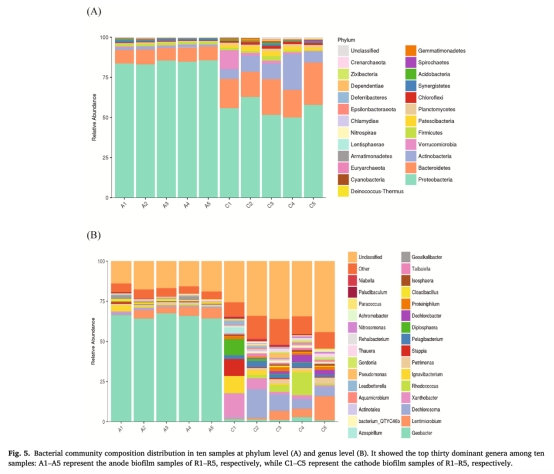 3. 高通量測(cè)序分析陽(yáng)極/陰極菌群結(jié)構(gòu)(圖5,表1)